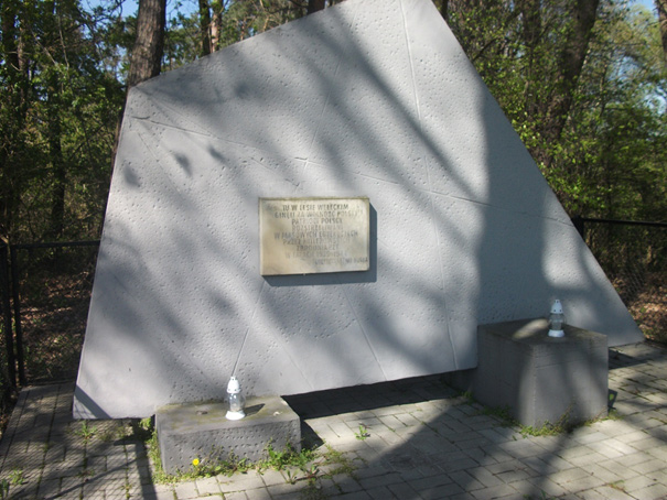 Opis: Pomnik upamiętnia miejsce egzekucji na kilkudziesięciu osobach dokonywanych przez Niemców w okresie lipiec 1943 – grudzień 1944 r.
