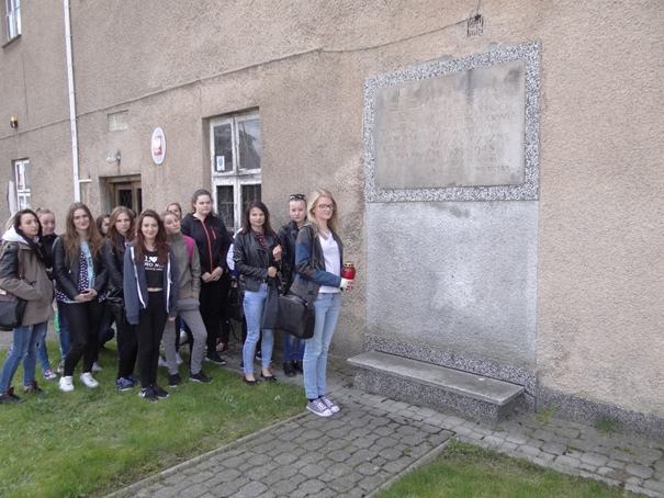 Opis:Pomnik znajduje się obok Willi Polonia, w które w czasie II wojny światowej znajdował się posterunek policji bezpieczeństwa. Po wojnie w Willi Polonia mieściła się siedziba Powiatowego Urzędu Bezpieczeństwa.