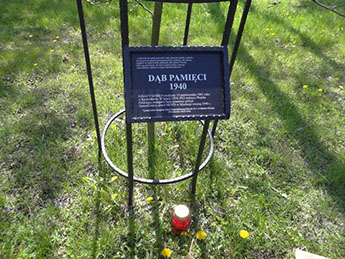 Opis: Dąb katyński poświęcony przodownikowi PP Julianowi Bomskiemu, zamordowanemu w Twerze. Dąb posadzono w 2008 r. na placu szkolnym.