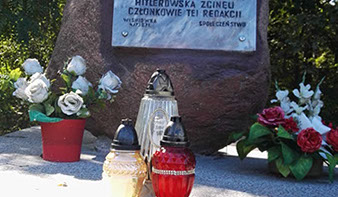 REDAKTORZY: / KAROLINA STAWIARZ - „LALA” / BOLESŁAW CZUB – „SZARY”/ ŁĄCZNICY: / LONGINUS ZAJĄCZKOWSKI / JAN SOBIERAJ / CZŁONKOWIE REDAKCJI PISMA KONSPIRACYJNEGO „ODWET” – JĘDRUSIE / POLEGLI Z RĄK OKUPANTÓW NIEMIECKICH 17 MARCA 1942 ROKU, NA WISNIÓWCE