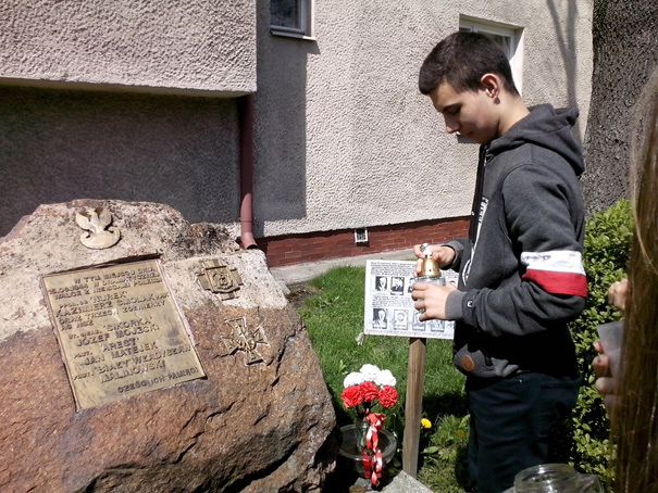 Opis: Tablica poświęcona nauczycielom zamordowanym w latach 1939–1945 ufundowana w 1971 r.