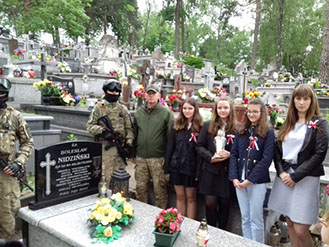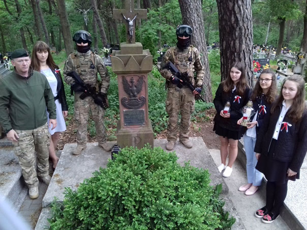 Ś. P. / ZDZISŁAW LEWICKI LEGIONISTA / POLEGŁ 15.VIII.1918 R. / POR. JÓZEF NYNEK PS. „SZCZĘSNY” / POLEGŁ 8.V.1944 R. JARKÓW / POR. STANISŁAW KORDAS PS. „ZAWISZA” / POLEGŁ 8.V.1944 R. JARKÓW / CZEŚĆ I CHWAŁA OBROŃCOM OJCZYZNY
