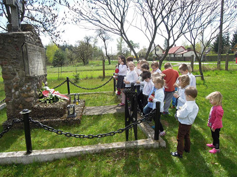 JÓZEF FALISZEWSKI 35 LAT/ W DN. 19. IX. 1943R./ ANTONI BIMEK 60 LAT/ FRANCISZKA BIMEK 64 LATA/ JAN FARYS 21 LAT/ PIOTR PAŁKA 22 LATA/ WŁADYSŁAW PŁATEK 36 LAT/ REGINA PŁATEK 27 LAT/ JADWIGA PŁATEK CÓRKA 2 LATA/ WITOLD PŁATEK SYN 8 LAT/ LEON PŁATEK SYN 11 LAT/ W DNIU 23. XI. 1943R./ STANISŁAW RACZYŃSKI 34 LATA/ KOLONIA MIŁKOWSKA 1983 r.