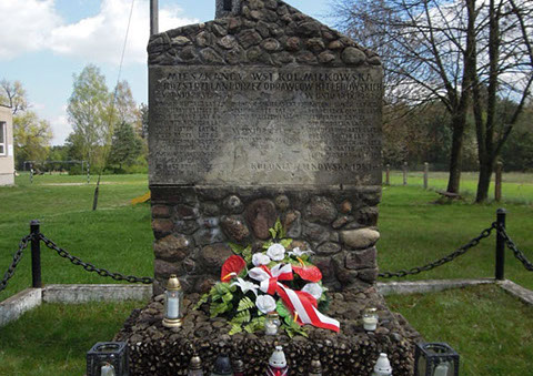 MIESZKAŃCY WSI KOLONIA MIŁKOWSKA ROZSTRZELANI PRZEZ OPRAWCÓW HITLEROWSKICH/ W DNIU 23. VI. 1943 R./ ROMAN KLEPACZ 20 LAT/ BRONISŁAW KLEPACZ 36 LAT/ ROCH KOŁACZ 48 LAT/ WALENTY KĘDZIORA 58 LAT/ JÓZEF LISTEK 42 LATA/ JÓZEF FARYS 43 LATA/ JÓZEF CZARNECKI 41 LAT/ ROCH KUREK 68 LAT/ MICHAŁ KLECHOWSKI 64 LATA/ 0JAN ŻAK 43 LATA/ TOMASZ KOWALSKI 42 LATA/ WINCENTY NALEWAJ 67 LAT/ HENRYK SOBIERAJ 33 LATA/ ZENON KOTT 19 LAT