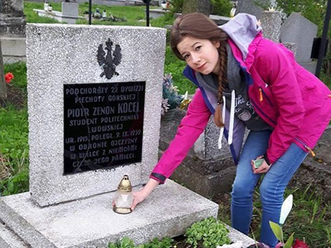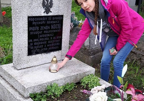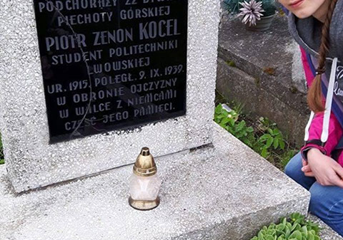 PODCHORĄŻY 22 DYWIZJI/ PIECHOTY GÓRSKIEJ/ PIOTR ZENON KOCEL/ STUDENT POLITECHNIKI/ LWOWSKIEJ/ UR. 1915. POLEGŁ. 9. IX. 1939./ W OBRONIE OJCZYZNY/ W WALCE Z NIEMCAMI/ CZEŚĆ JEGO PAMIĘCI/