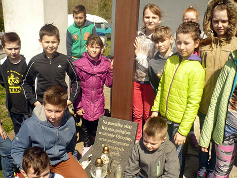 NA PAMIĄTKĘ OFIAR/ KATYNIA, POLEGŁYM/ W OBRONIE OJCZYZNY/ ORAZ POCHOWANYM/ W NIEZNANYCH/ MIEJSCACH