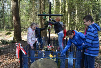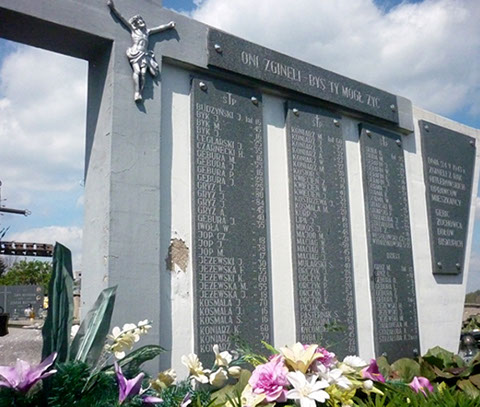 ONI ZGINĘLI – BYŚ TY MÓGŁ ŻYĆ/ DNIA 24 V 1943 R./ ZGINĘLI Z RĄK HITLEROWSKICH/ OPRAWCÓW/ MIESZKAŃCY/ GĘBIC/ ŻUCHOWA/ DOŁÓW BISKUPICH/