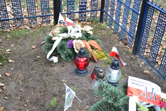 TU ZGINĘLI W WALCE O WOLNOŚĆ POLSKI/ Z OKUPANTEM HITLEROWSKIM/ W DNIU 15 XI 1944 R. DWAJ PARTYZANCI AK/ JUNAK I KOKOSZKA Z KOMPANII JĘDRUSIÓW/ POD DOWÓDZTWEM MAJORA „KAKTUSA”/ CZEŚĆ ICH PAMIĘCI/