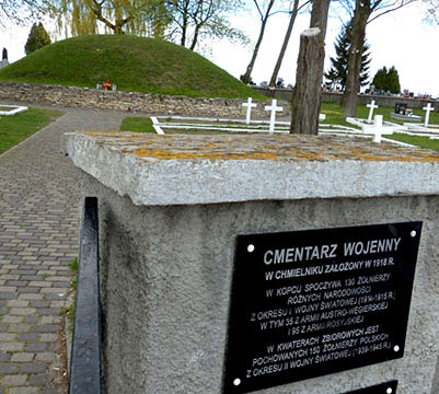 Opis: Cmentarz wojenny w Chmielniku powstały w 1918 r. na jego obszarze znajdują się zbiorowe mogiły żołnierzy austro-węgierskich oraz rosyjskich walczących podczas I wojny światowej (kopiec oraz kwatery boczne) oraz żołnierzy polskich poległych w II wojnie światowej (kwatery zlokalizowane częściowo na miejscach pochówków z I wojny światowej).