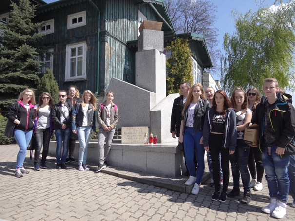 Opis:Pomnik znajduje się obok Willi Polonia, w które w czasie II wojny światowej znajdował się posterunek policji bezpieczeństwa. Po wojnie w Willi Polonia mieściła się siedziba Powiatowego Urzędu Bezpieczeństwa.