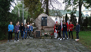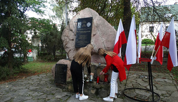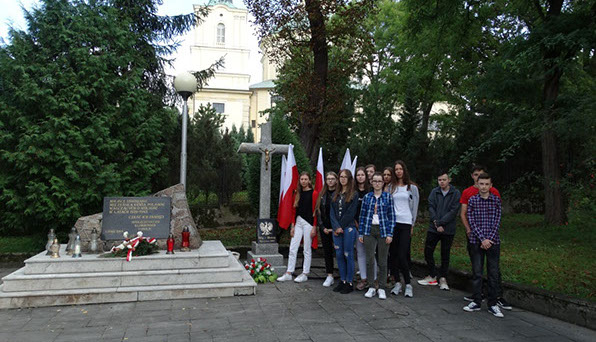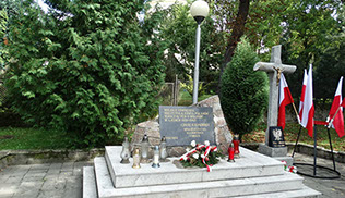 Opis: Miejsce pamięci poświęcone Polakom, którzy polegli w obronie Ojczyzny w latach 1939-1945. Niewielkich rozmiarów obelisk, na którym umieszczono granitową tablicę, odsłonięty został w lipcu 1964 r. Obok obelisku znajduje się wykonany z jasnego granitu krzyż, na którym widnieją: metalowa figura Chrystusa a także tabliczka z ciemnego granitu z orłem w koronie oraz krótką inskrypcją: Bóg - Honor / Ojczyzna 2003.