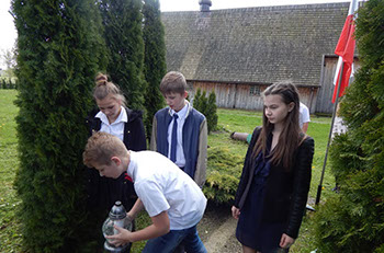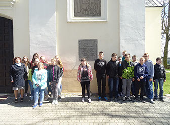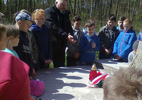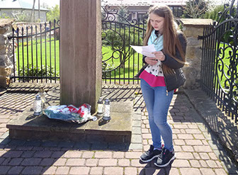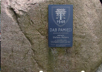 DĄB PAMIĘCI/ POSADZONY DLA UHONOROWANIA/ ASPIRANTA/ STEFANA MÜLLERA/ UR. 03.08.1908 W ŁODZI/ ZAMORDOWANEGO STRZAŁEM W TYŁ GŁOWY/ PRZEZ NKWD W TWERZE W ROKU 1940/ PROGRAM „KATYŃ… OCALIĆ OD ZAPOMNIENIA”